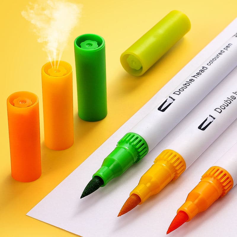 Caneta de desenho com ponta dupla Fineliner, material escolar e de escritório de boa qualidade da Foska, disponível em 12/24/36/48/60/72/100 cores. Tinta atóxica, segura para crianças.