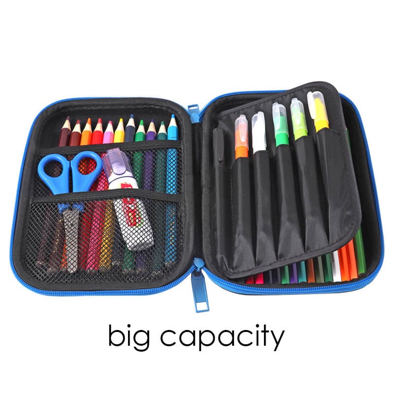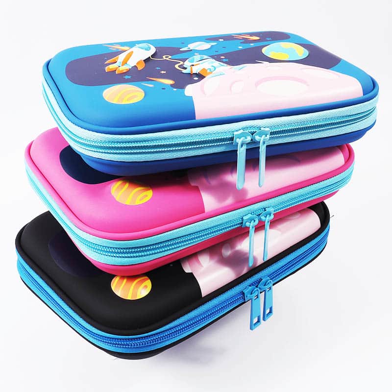 EVA pencil bags offer durability, water resistance, easy cleaning, portability, visibility, and versatility, making it an excellent choice for keeping your stationery well-organized and protected.