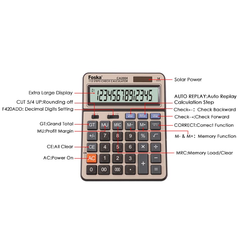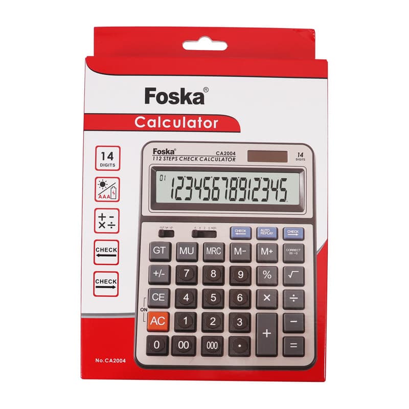 Durable and Versatile Design: Our Foska CA2004 Digit Solar Power Electronic Office Calculator is designed with a robust plastic material and compact size (208*158*33mm) to withstand daily use in various environments.