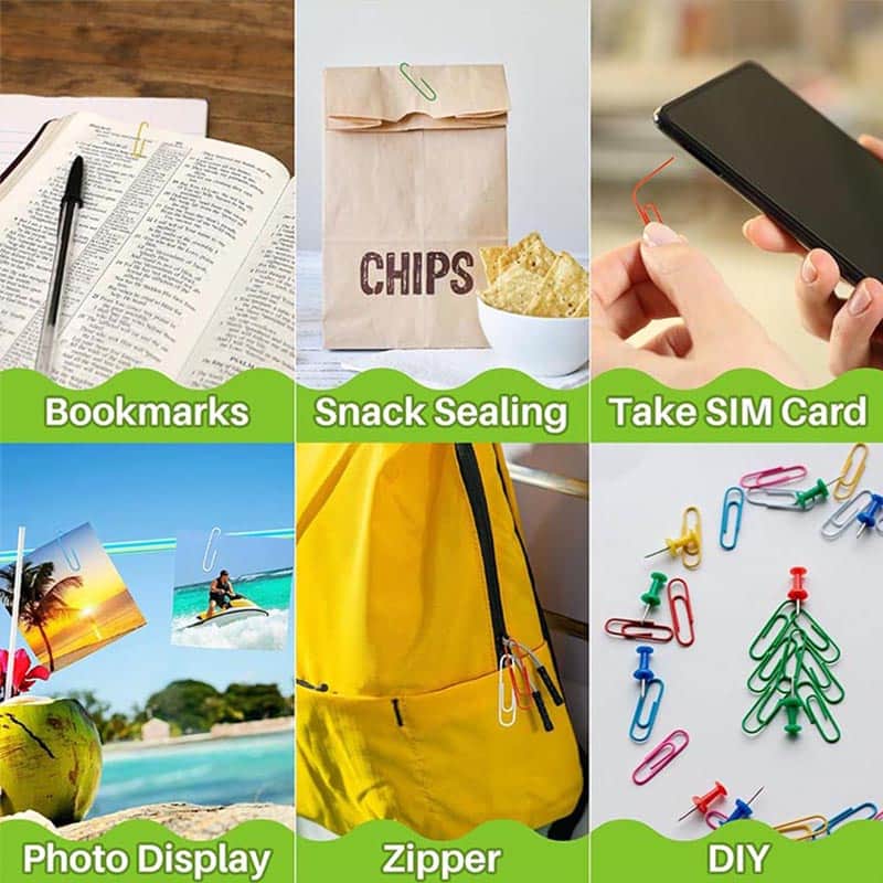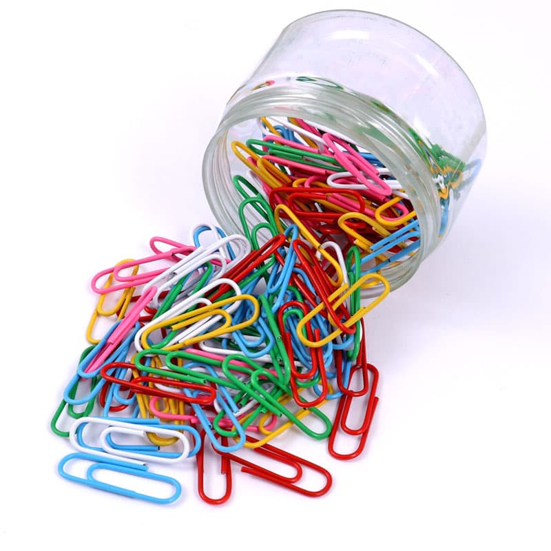 Os clipes de papel mantêm os papéis juntos com segurança, sem causar danos, como furos ou marcas, ao contrário dos grampos.