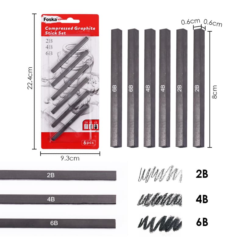 FoskaFOSKA 6 PCS Compressed Graphite Sticks Set for Drawing
