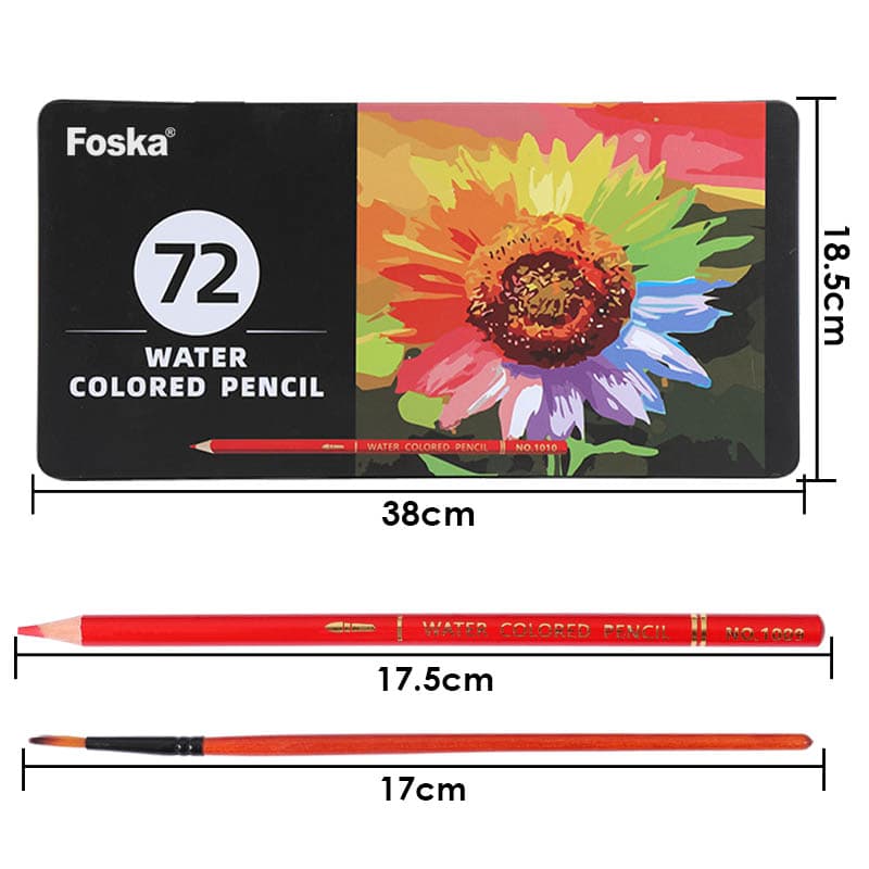 Conjunto de 72 Lápis de Cor em Cores Vibrantes Nº do Item: CQ3003 O pacote inclui: 72 lápis de cor solúveis em água + 1 pincel de cerdas Tipo: Lápis solúvel em água Comprimento: 17,5 cm (7") Refil: Grafite Material do Corpo: Madeira Certificações: ASTM D4236, EN71, MSDS Embalagem: 72 unidades por caixa colorida Caixa com 20 unidades por embalagem