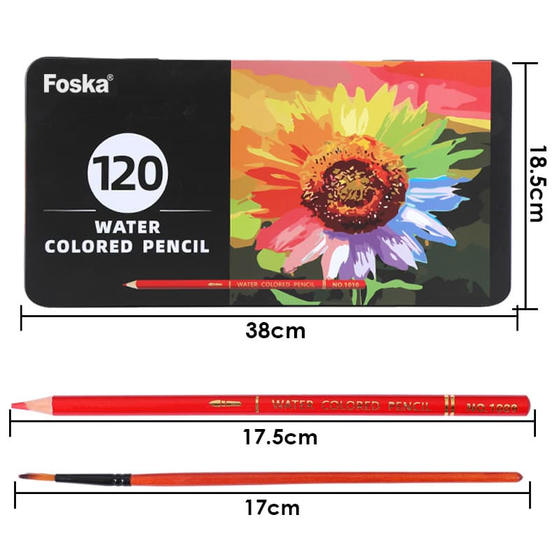 Conjunto de 120 Lápis de Cor em Cores Vibrantes Nº do Item: CQ3004 O pacote inclui: 120 lápis de cor solúveis em água + 1 pincel de cerdas Tipo: Lápis solúvel em água Comprimento: 17,5 cm (7") Refil: Grafite Material do Corpo: Madeira Certificações: ASTM D4236, EN71, MSDS Embalagem: 120 unidades por caixa colorida Caixa com: 9 caixas