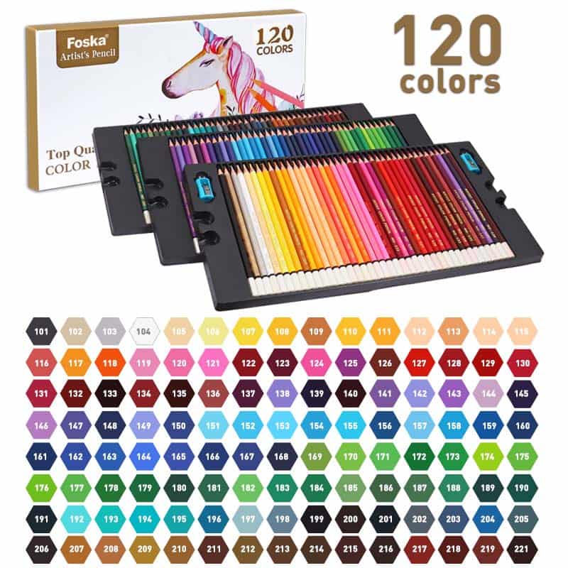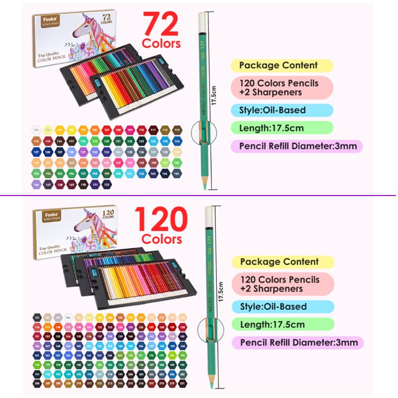 Foska Oily color pencil, there are 72 colors and 120 colors for choice. With 2 pencil sharpeners.