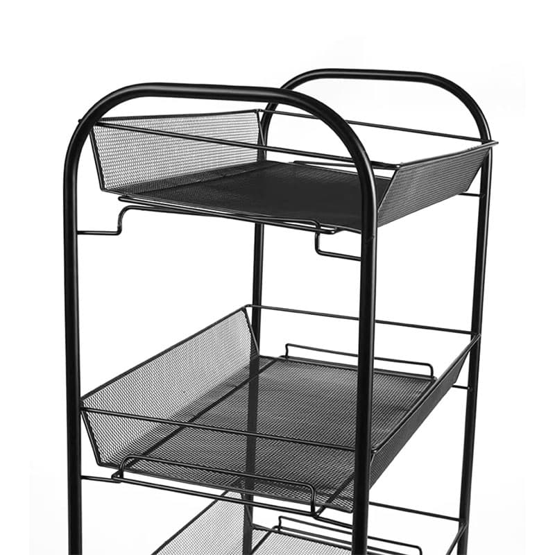 O carrinho oferece várias bandejas ou prateleiras para organizar vários itens, tornando-o adequado para armazenar diversos produtos ou ferramentas.