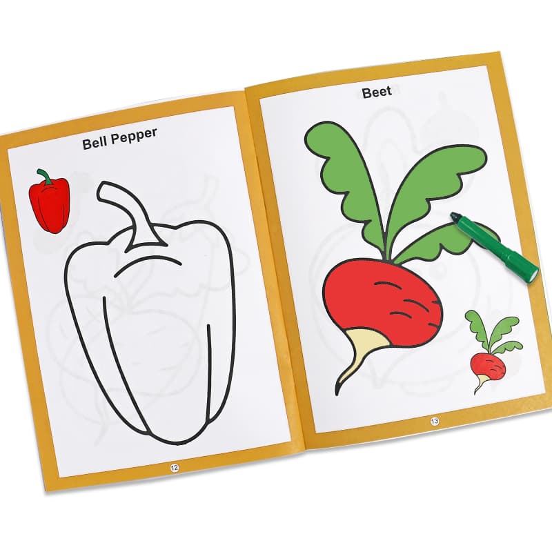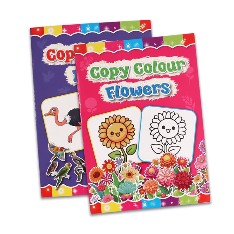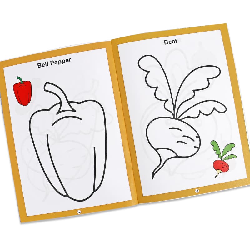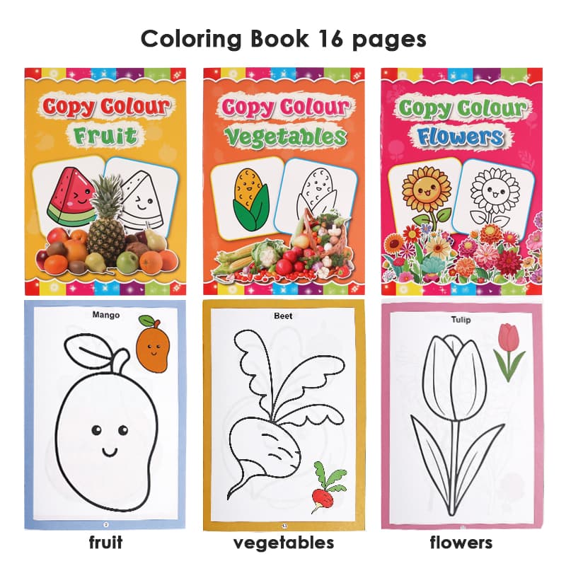 8pages, 6designs birds, animals, transport,fruit, vegetables,flowersmarca :