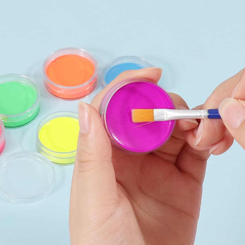 Nosso Tinta facial neon atóxica de 6 cores para crianças—a mistura perfeita de diversão vibrante e segurança aprovada pelos pais, projetada para tornar cada ocasião mais brilhante e sem preocupações!