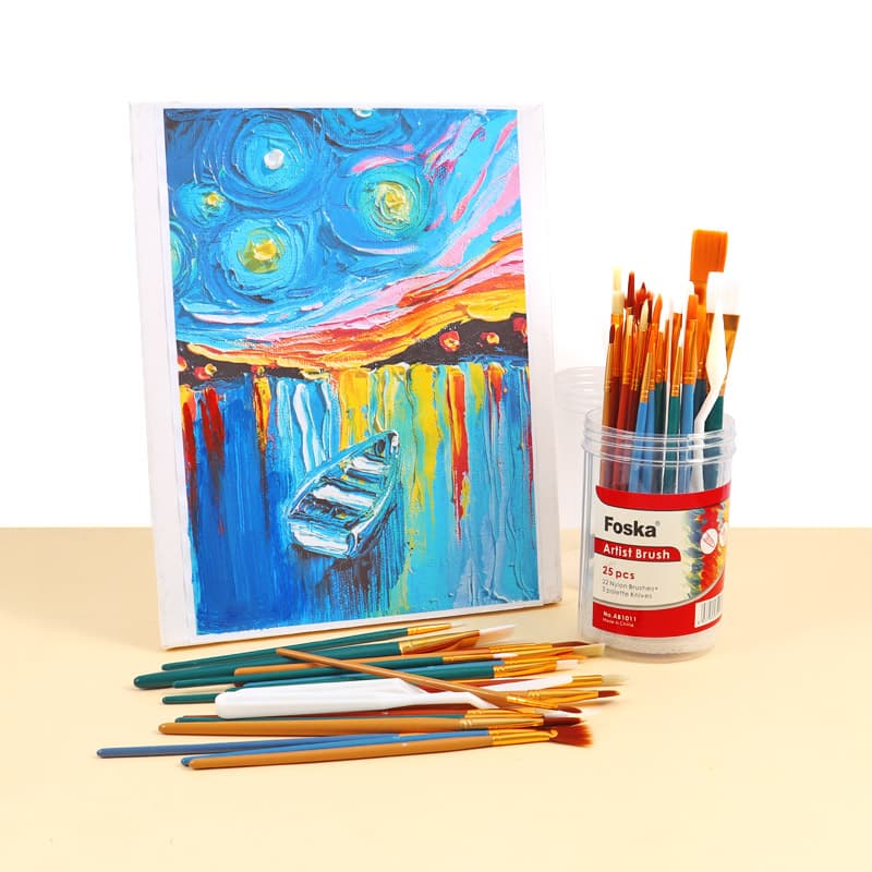 Elevate your artistic journey with our versatile 25-piece paintbrush kit, designed for artists of all skill levels—from beginners to seasoned creators.