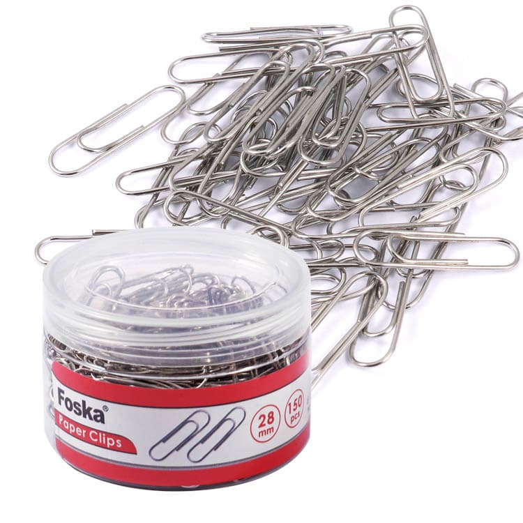 Clips de papel de 28 mm, 150 unidades, níquel. 150 unidades por tambor.